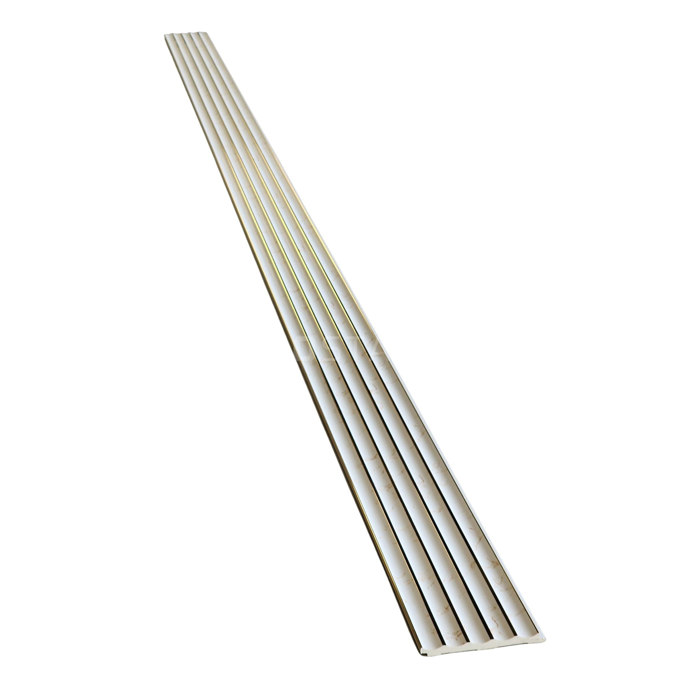 Arctic Beam™ is where sleek Scandinavian minimalism meets luxurious detail. Coated in an icy white finish with soft gold shimmer accents between the flutes, this 6.3 cm wide WPC slat panel adds brightness and refinement to any space. Its matte, marble-like tone reflects light beautifully—ideal for contemporary interiors, commercial showrooms, or elegant hallways.