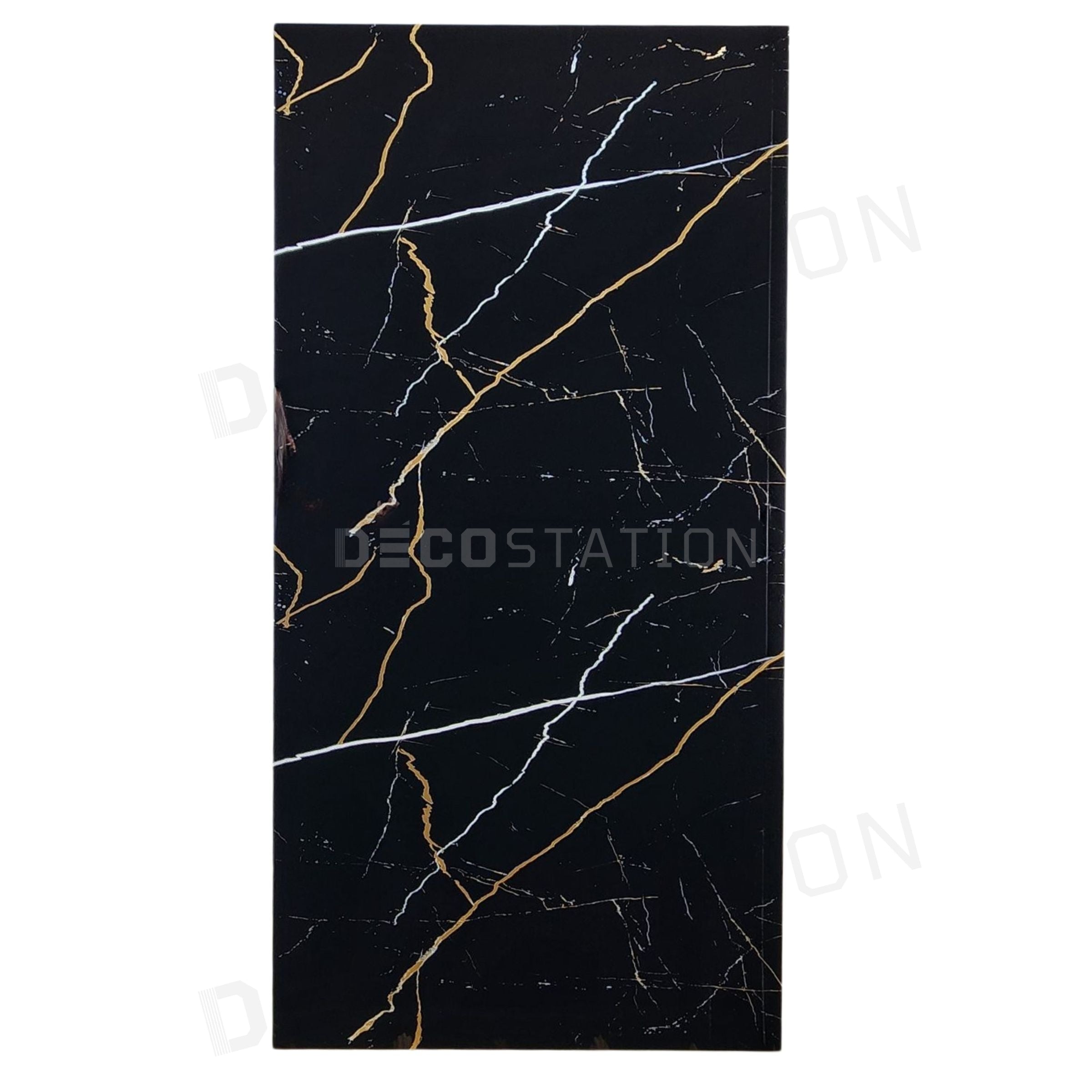 Colour / Pattern | Deep black marble base with striking golden and crisp white veins